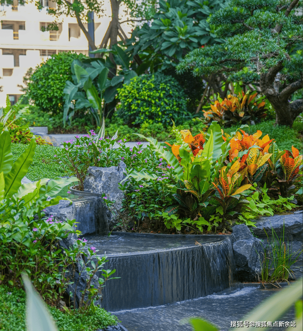 此外,园林全体规划亦遵照一步一景准绳,通过分歧类型植被取石材、流水等的交织搭配,加上社区园林场地本身高差设想,从而构成凹凸崎岖、参差有致的景不雅条理感。